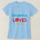 Granma me ama camisetas, pantalones de vestir, tarjetas, bolsas y otros artículos con un diseño de texto azul, rojo y amarillo.