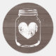 Grano de madera rústico de moda rústica tarro de masón pegatinas de boda Diseño de época para la fiesta de casamiento de granero de jardín DIY / linda ducha de novia. diseño de bonito con un símbolo de amor anticuado. Color del fondo del personalizable. marrón y blanco. Personalizable con nombre o monograma de novia y novio. Práctico para favores y selladores de sobres.