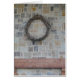 Wreath de Grapevine del Club de Arrowhead sobre la piedra exterior de la chimenea.