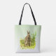 Aquí hay una bolsa de té fría que presenta un lindo conejo marrón en el pasto verde.