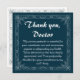 "Tarjeta de agradecimiento a los Médicos - Tarjeta plana de Personalizado para honrar a los médicos y al personal médico" Expresar gratitud a los profesionales de la salud requiere un gesto reflexivo, y esta elegante tarjeta plana de agradecimiento está diseñada específicamente para transmitir un sincero agradecimiento a los médicos, médicos, enfermeras y demás personal médico. Con su refinado borde floral y su distinguida tipografía, esta carta transmite de manera bella su admiración y respeto por aquellos que dedican sus vidas al cuidado del paciente. Ya sea que se esté recuperando de una enfermedad, celebrando un tratamiento exitoso o simplemente reconociendo el compromiso de larga data de un médico con su salud, esta tarjeta proporciona el lienzo perfecto para sus palabras de agradecimiento. A diferencia de las tarjetas comunes, este diseño plano ofrece un aspecto limpio y sofisticado que puede ser personalizado para adaptarse a tu mensaje específico. Su disposición atemporal lo hace adecuado para pacientes individuales, familias o incluso departamentos hospitalarios que deseen agradecer a un médico de confianza. Más allá del uso personal, también es una excelente elección para semanas de aprecio médico, días de reconocimiento al personal de salud, o como parte de un paquete de regalos de gratitud de paciente a médico. El material de cartón duradero asegura una calidad duradera, lo que hace que sea un placer para los profesionales médicos. Los médicos, que a menudo van más allá, se sentirán genuinamente valorados cuando reciban una señal tan reflexiva de reconocimiento. Al combinar el diseño profesional con la sinceridad emocional, esta carta de agradecimiento destaca como elegante y significativa. Los clientes que busquen tarjetas de agradecimiento médicas, regalos de apreciación de la atención médica o artículos de papelería de reconocimiento de médicos encontrarán este producto especialmente adaptado a sus necesidades. Ya sea para los médicos generales, cirujanos o especialistas, esta tarjeta brinda el sentimiento más sincero que las palabras solas a veces no pueden captar. Con opciones de personalización disponibles, te permite adaptar tu nota para crear un gesto de agradecimiento memorable y profundamente apreciado.