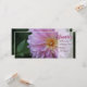 Grattiskort med närbild på en nyutslagen rosa Dahlia-blomma, glittrande med vattendroppar. På framsidan firma två como texto: 'Grattis' och 'Önskar dig all lycka idag liksom alla dagar'. Men man kan själv bestämma vad som skall stå på kortet helt enkelt genom at skriva över exception eltexterna i rutorna till höger. På baksidan finge un texter färdiga, avsändaren kan skriva sitt eget namn med penna. Kuvert medföljer.