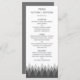 Estas tarjetas de menú son perfectas para cualquier pareja que planee una celebración rústica de bodas de bosques. El diseño presenta una amplia gama de bosques oscuros en tonos grises sobre un fondo blanco con una redacción editable en color. El sencillo diseño puede ser personalizado para su evento especial y será el menú perfecto para cualquier fiesta de temática rústica, incluyendo duchas de novias, compromisos, duchas de bodas, fiestas de cumpleaños y mucho, mucho más.
