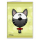 El rostro adorable de un personalizado grisáceo gato de tabby se ve con un collarín rojo y un fondo amarillo con un borde amarillo más oscuro. Diseño original de Christie Black de Creations from the Heart.