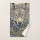 Lobo gris entre hojas en el bosque , arte para los amantes de los lobos .