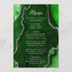 Display your meal selections in style with this elegant wedding menu featuring a green agate marble design accented with silver details. The geode-inspired background creates a sophisticated look, perfect for fall and winter weddings, formal celebrations, or evening events. Designed to coordinate with your wedding stationery suite, this menu is ideal for presenting courses clearly while adding a luxurious touch to your table setting. The clean typography ensures readability while complementing the agate texture. Easily personalize all text to suit your menu and event details, making it a beautiful choice not only for weddings but also for engagement parties, anniversaries, and other formal occasions.