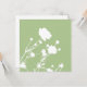 Simple and elegant floral card with a green background a white silhouetted flowers.