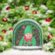 There is a placeholder baby photo in an arch, surrounded by a green arch with white text and snowflakes.