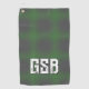 Patrón verde y gris oscuro, con letras en negrita y blancas, en tipografía monográfica de tipo de letra de color gris. Personalizar con sus propias iniciales.