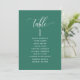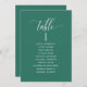 Ayude a sus huéspedes a encontrar su mesa con estas elegantes y modernas tarjetas con nombres de invitados. Tarjetas de doble cara para que los huéspedes puedan ver sus nombres desde ambos lados, delante o detrás. Espacio despejado alrededor que le da la libertad de usar clips o agujeros para las pantallas colgantes, o usar soporte de mesa/marco. Fondo verde esmeralda y texto blanco. Detalles modernos de caligrafía escrita a mano. Varias opciones de color. Tener todos los números de tabla en el mismo color o mezclar colores según el tema de color del evento.