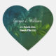 Pegatina de la dirección de la novia y el novio, de estilo rústico y personalizado, con forma de corazón. El diseño vintage presenta hojas verdes bajo el crepúsculo verde. Ver artículos coincidentes en la colección de bodas rústicas de bodas antiguas de Borgoña.