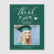 Green Elegant Script Simple Graduación De Fotografías Gracias Magnética Card. "Gracias" a tu familia y amigos con esta hermosa tarjeta de agradecimiento. Todos los textos están preorganizados para que puedas personalizarlos fácil y rápidamente con tus propias palabras.