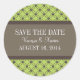 Fancy Lattice de moda y moda Salven a los Pegatinas Date con un círculo elegante y un patrón de rayas de diamante sobre una vibrante tirita dispara fondo verde con un amplio borde marrón de dos tonos. Estos elegantes ahorran a los pegatinas de fecha son perfectos para anunciar su boda moderno. Fácil de personalizar, simplemente agregue los detalles de su boda en los campos de texto proporcionados. Haga clic en "Personalizar" para encontrar más opciones de personalización.