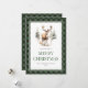Colorante de agua verde búfalo trenzado La tarjeta navideña Merry con un ciervo en un bosque. Personalice fácilmente esta nevada tarjeta de vacaciones verde con su nombre familiar y el año.