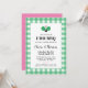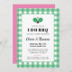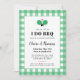 Celebra a la pareja comprometida con esta encantadora invitación rosa, verde y blanca de la fiesta I Do BBQ que incluye una visión alegre del clásico patrón de canto de gingham y un encantador par de pádel de tenis de mesa con corazón. Personalizar el texto para que se ajuste a los detalles de su fiesta con cuadros de texto flexibles o cambie aún más el diseño, como los colores a los de su elección, utilizando el botón azul Personalizar.