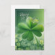 Este colorido motivo del Día de San Patricio presenta un gran patrón verde de shamrock en el centro sobre un fondo verde rodeado de muchas pequeñas rocas y el texto "¡Feliz Día de San Patricio!" El texto tiene un acento brillante en letra blanca vintage.