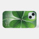 Este colorido motivo del Día de San Patricio presenta un gran patrón verde de shamrock en el centro sobre un fondo verde rodeado de muchas pequeñas rocas y el texto "¡Feliz Día de San Patricio!" El texto tiene un acento brillante en letra blanca vintage.