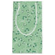 Una bolsa de regalo pequeña bonito, con un patrón de rocas de color verde oscuro delineado en blanco, sobre un fondo verde claro. Este patrón, que forma parte de la colección "Shamrock" de Posh & Painterly, se puede ajustar para que se ajuste a cualquier bolsa o caja de regalo.