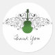Perfecto para un boda con temas de rock y roll son estos rockeros moda Swirls Guitar Gracias Pegatinas en verde oscuro. Este exclusivo diseño cuenta con una guitarra a rayas y está flanqueado por cascadas de elegantes batidos. Fácil de personalizar, simplemente agregue los detalles de su boda en los campos de texto proporcionados. Haga clic en el botón "Personalizar" para encontrar opciones de personalización adicionales.