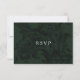 Tarjeta de respuesta Rsvp con opciones de comida con un diseño ornamental de color verde oscuro con flores ornamentales de la época victoriana. Tarjeta de respuesta simple tanto moderna como vintage.