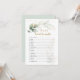 Este diseño presenta un ilustracion acuarela de follaje verde y dorado - Juego de álbumes de Baby Shower Word. En la parte superior de la tarjeta - confeti de efecto oro. Descifrar las palabras del bebé. La Clave De Respuesta: Bebé Polvo, Botella, Cajeta, Tapones, Canción, Asiento De Coche, Termómetro, Champú, Pacificador, Bovino, Bassinet, Alta Silla, Monitor De Bebé, Tirador, Guardería