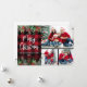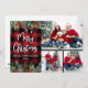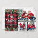 Celebre la temporada con esta acogedora tarjeta horizontal de Navidades de collage de fotos que presenta un atrevido fondo rojo y negro de manto de búfalo. En la parte superior e inferior de la manta se han colocado bonitos toques verdes, como el pino, los verduras, el eucalipto y las bayas, lo que aporta un toque fresco y festivo. En el lado izquierdo del frente, "Feliz Navidad" está escrito en una mezcla de tipos de letra clásicos de serif y script, con el nombre de su familia mostrado justo debajo. El lado derecho de la tarjeta incluye un collage de tres fotos, que te da espacio para mostrar los recuerdos favoritos de las vacaciones, retratos familiares o fotos de mascotas. La parte posterior de la tarjeta incluye un punto para escribir una nota personal, o puede dejarla en blanco para escribir a mano el mensaje después de imprimir. Todas las fuentes, colores y fotos se pueden personalizar completamente para que coincidan con su estilo. Una manera cálida y clásica de enviar alegres saludos de vacaciones con un toque personal.
