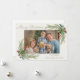 Una tarjeta de vacaciones para Navidades de fotografía festiva con vegetación de aguja y tipografía de escritura moderna. Haga clic en el botón de edición para personalizar este diseño con sus detalles.