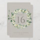 Una tarjeta boda de dos caras, de color gris, con un numero de nevadas pintadas a mano y un eucalipto dispuestos en una hermosa corona botánica. Todo el texto es completamente editable. Otros diseños, productos de números de tabla y artículos de coordinación están disponibles en mi tienda.