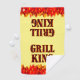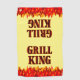 Grill King dijo una cocina divertida en un tipo de letra que suena en occidente para cocineros y cocineros cocineros. Con arte gráfico de llamas rojas y naranjas en los extremos de la toalla - perfecto para colgar en tu barbacoa.