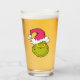 This fantastic, bold illustration is a close-up portrait of the Grinch in full mischievous mode! He has his signature sly grin and bright yellow eyes, but his look is updated with a large, fluffy Santa hat in a fun, unexpected pink/fuchsia color instead of the traditional red. This graphic is perfect for anyone who loves the holidays but embraces a non-traditional, delightfully grumpy, and colorful style!