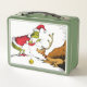 This hilarious illustration captures the precise moment the Grinch decides his dog needs an upgrade! The Grinch, dressed in his full, fuzzy Santa suit, is meticulously tying a single reindeer antler onto the head of his dog, Max, using a piece of string or yarn. Poor Max looks utterly resigned to his fate as the "reluctant reindeer." This fun, classic illustration perfectly highlights the absurd and mischievous planning behind the famous Christmas heist!