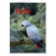 Un hermoso loro gris africano se sienta en una rama con el bosque detrás de él. La palabra Hola está arriba y puede cambiarse para que se adapte a sus necesidades.