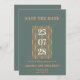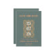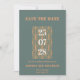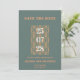 Moderno Gris azul y Terracota Guardar la tarjeta de fecha Una boda moderna Save the Date con un diseño elegante y un elegante guión en blanco y terracota. Los nombres de color exactos son Cutty Sark (gris azulado) y Raw Sienna (terracota). Personalice los detalles de su evento.