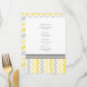 Menú de la cena de boda en amarillo limón brillante, gris elegantes y blanco con el modelo de zigzags retro del galón de la diversión, personalizable con sus detalles y disponible en hacer juego productos del boda.