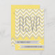 Tarjeta de respuesta RSVP de boda amarilla y gris chevron moderna que presenta un diseño de chevron zigzag moderno en amarillo, gris y blanco. Este elegante diseño es ideal para las novias modernas con su gran tipografía moderna pero también para un boda tradicional por las clásicas rayas de chevron. Se trata de una plantilla, que forma parte de un conjunto de bodas y que puede utilizarse en cualquier temporada, es decir, en primavera, verano, otoño o bodas de invierno. Simplemente cambie el color de fondo - amarillo - al color de su gusto haciendo clic en "Personalizar" para elegir entre cientos de colores.