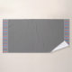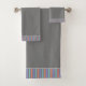 Una toalla de baño con un acento de rayas en color violeta, verde azulado y naranja, con un fondo gris de carbón vegetal que se puede cambiar a cualquier color para que coincida con tu elegante decoración de baño.