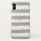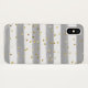 Este moderno y moderno estuche de teléfono celular a rayas grises y blancas simuló un confetti dorado. Añade tu propio texto si quieres que sea personalizado.