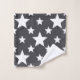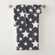 Toallas de diseño con un patrón de estrellas blancas grandes y pequeñas sobre un fondo gris pizarra.
