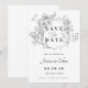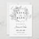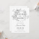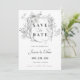Invitación mínima a la boda Guarde la tarjeta Date con floral y caligrafía grises.