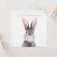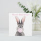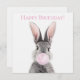 Conejo gris soplando un chicle rosado