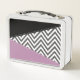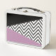 Elegante, elegante y sofisticado zigzag (chevron) de color gris y blanco con parches de color morado y negro. Regalo moderno y moderno, perfecto para el amante del zigzag en tu vida.