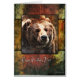 Una tarjeta de cumpleaños para papá con la cabeza de un oso pardo sobre un fondo de colores cálidos.