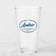 Vidrio de cerveza para el groomsman boda que muestra su nombre impreso en un verde azulado y moderno color azul, estilizado guión dentro de un verde azulado borde oval de color azul junto con la fecha boda del año. ¡Una gran idea de fiesta para una fiesta de solteros! Personalice su vaso de cerveza editando y reemplazando el nombre y la fecha por el suyo propio. Disponible en muchos esquemas de color boda populares.