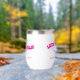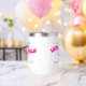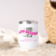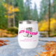 Celebremos a la futura novia con estos modernos "Let's Go Chicas", copas de vino termal de estilo occidental de la soltera con botas de vaquero de plata y arte estrella de purpurina rosa. Personalizar con nombre y evento.