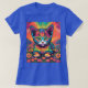"Groovy Meowments" Blue's Kitten T-Shirt Esta es una camiseta azul con arte psicodélico "Groovy Meowments" en la parte delantera. El diseño fue creado con arte generativo. La colorida obra de arte muestra un lindo gatito en un campo de flores. "Groovy Meowments" está en la imagen en escritura amarilla. La camiseta es 100% algodón. Puede cambiar el texto haciendo clic en el botón Personalizar.
