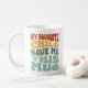 Porque criar leyendas es cosa de la familia. Este "Groovy, mi hijo favorito me dio esta taza" es un hilarante grito a un niño que claramente clavó el juego de regalos. La misma parte del café y el oro de la comedia, es la mezcla perfecta de amor, ingenio y justo el favoritismo suficiente para agitar algún drama hermano. Ideal para el Día de la Madre, el Día del Padre, o cualquier día que necesite un poco más de cafeína y aumento del ego.