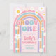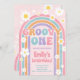¡El diseño es para un primer cumpleaños! Cuenta con un arco iris retro, una tipografía divertida y flores. ¡Una invitación dulce y colorida para la celebración de su primer cumpleaños! Personalice el texto editable.