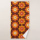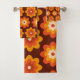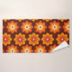 Este es un adorable patrón de floral retro groovy en naranja, ámbar y beige sobre fondo marrón. Es divertido diseño de flores retro de los años 70 para tu baño como toalla de baño