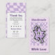 Añada un toque de juego y estilo a su pequeño paquete de negocios con esta tarjeta de agradecimiento retro-morado. Diseñada con un fondo a la moda morado y blanco a cuadros y un divertido personaje estrella dibujado a mano, esta tarjeta es la manera perfecta de mostrar aprecio a sus clientes. Con un mensaje de agradecimiento, una sección de código de descuento y un espacio para los detalles de su negocio, esta inserción ayuda a crear lealtad al cliente y anima a realizar revisiones. Ideal para tiendas hechas a mano, dueños de boutiques y vendedores de Etsy, este diseño atrevido y llamativo hace que tu paquete destaque.