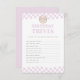 Celebra tu fiesta de cumpleaños de chicas groovy con nuestro juego de trivia de cumpleaños 'ONE RAD CHICK', con lavanda juguetona. Este diseño presenta una cara feliz fácil de amar con gafas de señas de paz y patrones de lavanda ondulados a cuadros.